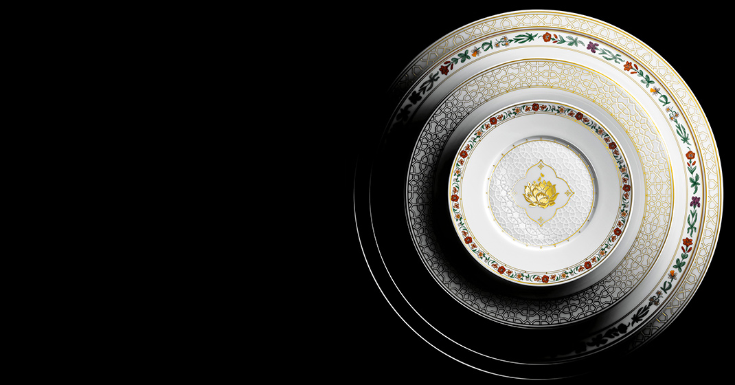 Ein Feuerwerk der Farben und Ornamente auf einer klassisch-eleganten Porzellanform: Das ist der Dekor RAJASTHAN. Zusammen mit dem Hamburger Designer Peter Kempe übersetzte FÜRSTENBERG die Pracht Indiens in zeitgemäße Tischkultur. Inspiriert von orientalischen Formen, der Farbenpracht indischer Saris, goldenen Gittern aus der Tempelarchitektur Rajasthans, byzantinischen Blumenmustern und Textil-Ornamenten aus dem 16. Jahrhundert entführt RAJASTHAN auf eine sinnliche Reise in den Alten Orient. ZUM ONLINE-SHOP
