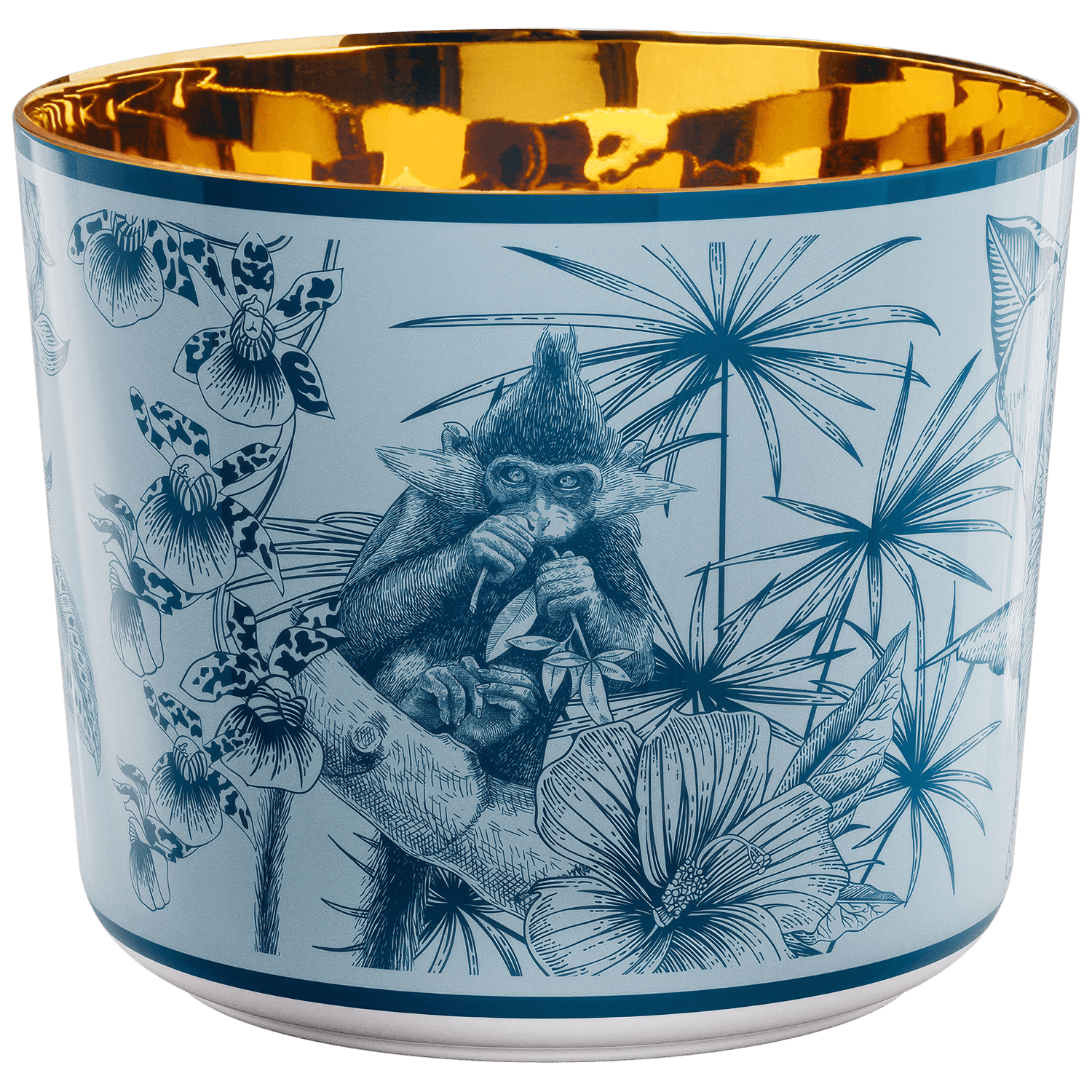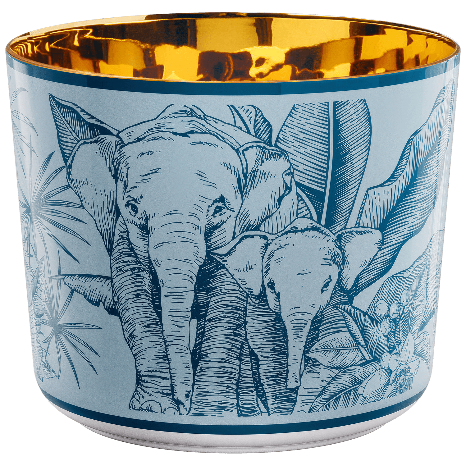 Gefertigt aus hochwertigem, dünnwandigem Porzellan, überzeugt der Becher durch eine angenehme Haptik und eine ausgewogene Silhouette. Die glänzende Glasur betont die Klarheit der Konturen, während das Dekor in der Manufaktur mit großer Sorgfalt ausgeführt wird. Die innenliegende Vergoldung setzt einen markanten Akzent und reflektiert das Licht bei jedem Anstoßen.