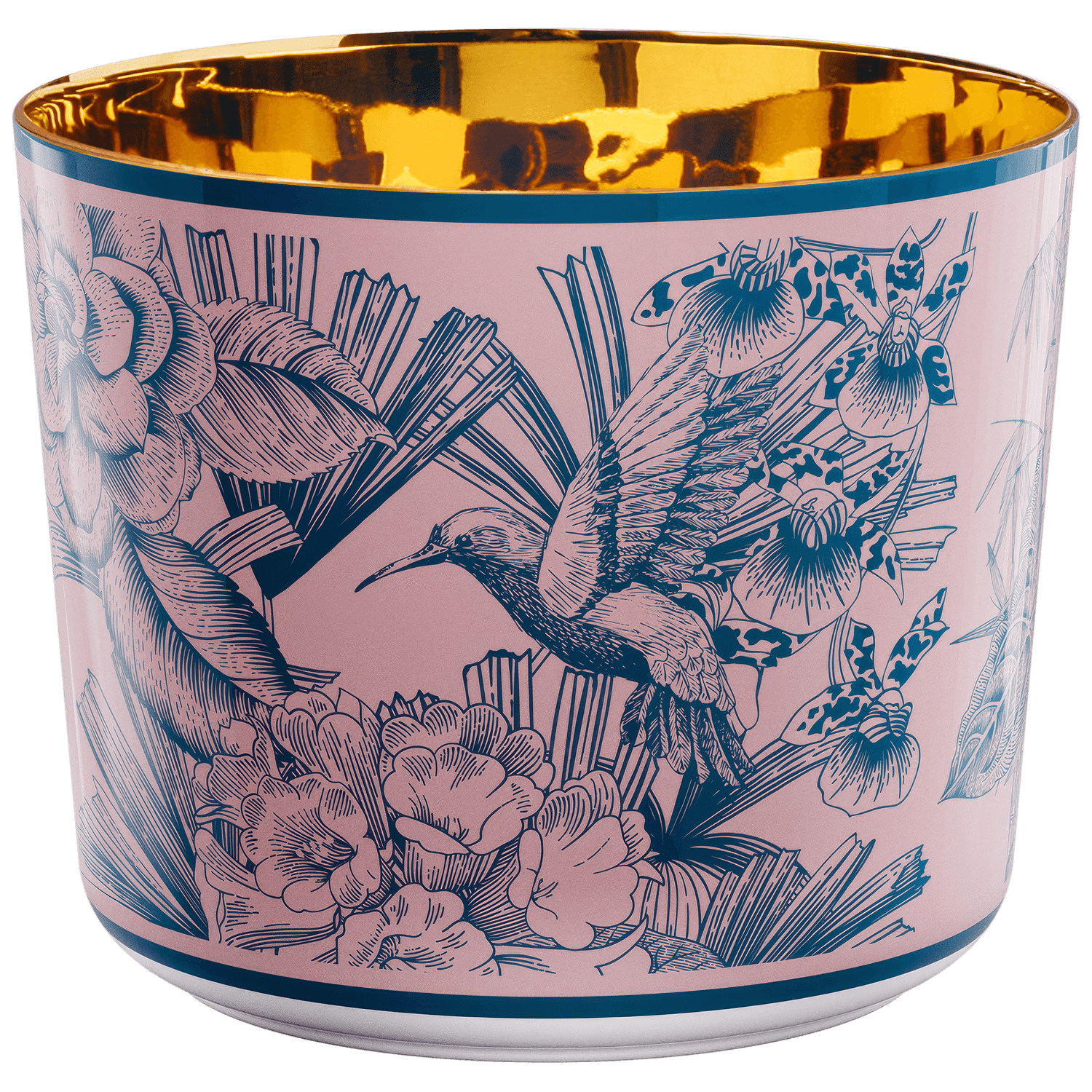 Gefertigt aus hochwertigem Hartporzellan, entsteht der Becher in sorgfältiger Formgebung und kontrolliertem Scherbenaufbau. Das Dekor wird mit großer Genauigkeit aufgebracht, bevor die Innenseite mit einer glänzenden Vergoldung veredelt wird. So entfaltet sich ein intensives, warmes Lichtspiel, das Champagner, Crémant oder Cocktails elegant in Szene setzt.