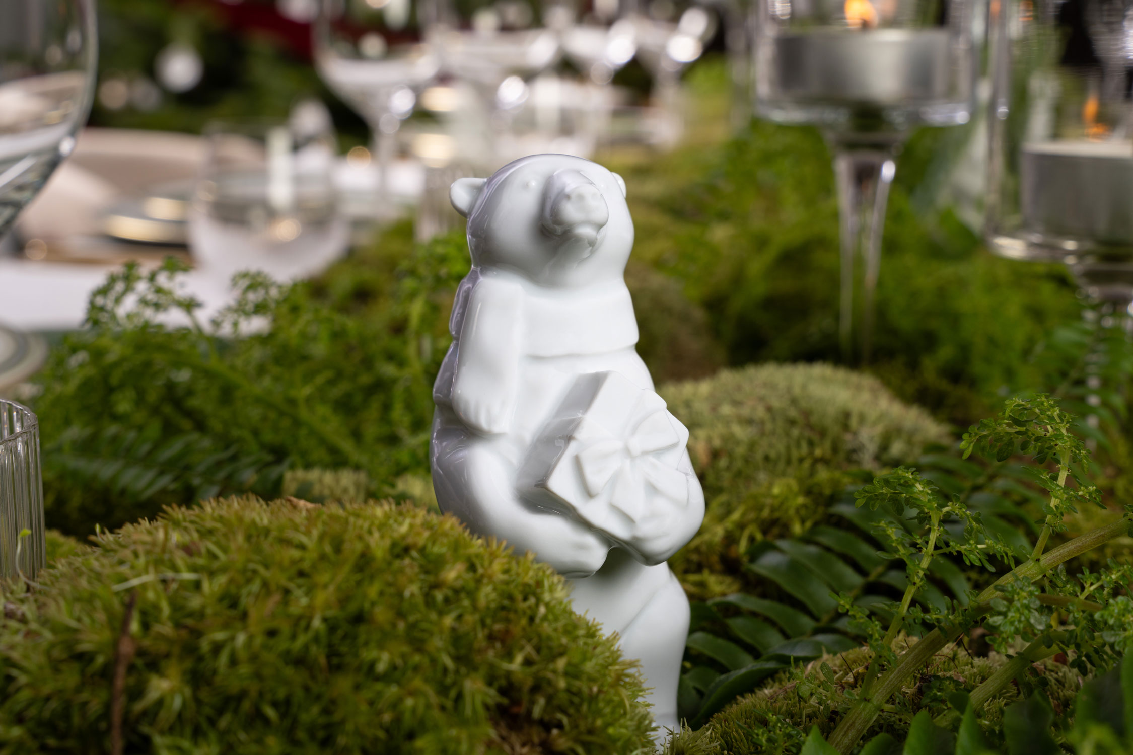 Gefertigt in der renommierten Porzellanmanufaktur FÜRSTENBERG, die seit über 275 Jahren erstklassige Handwerkskunst pflegt. Das reine Weiß und die fein abgestuften Volumina betonen Licht und Schatten; sanfte Übergänge modellieren Fell, Schal und Schleife, wodurch eine ausgewogene Haptik und visuelle Ruhe entstehen.