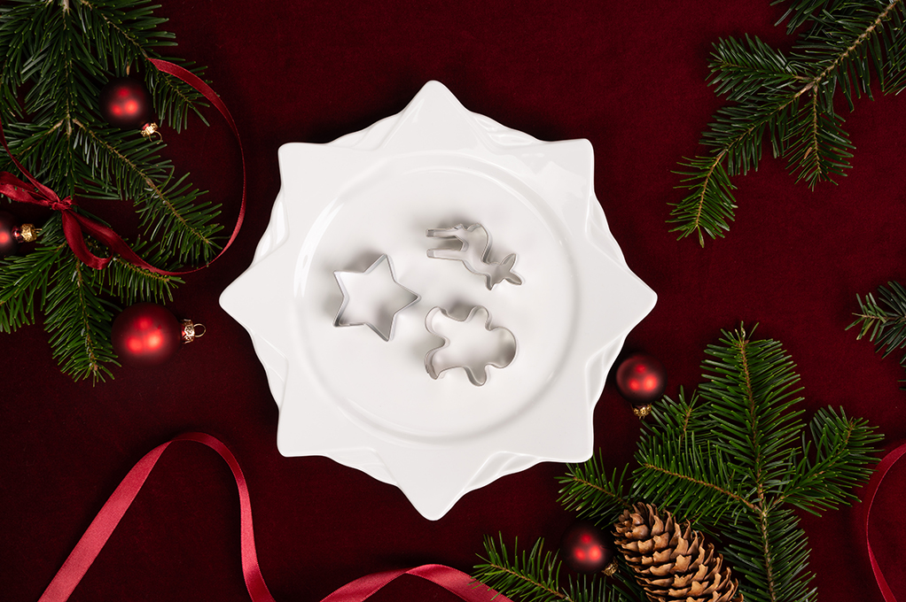 The biscuit plate with matching cookie cutters combines Christmas baking and festive decoration in the most delightful way.
