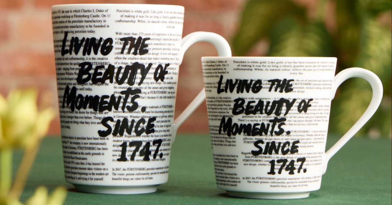With the Moments Collection, the Porzellanmanufaktur FÜRSTENBERG celebrates life’s small and meaningful moments. Expressive black-and-white décors meet a timeless mug shape, turning each piece into a personal statement—made for collecting, gifting, and everyday enjoyment.