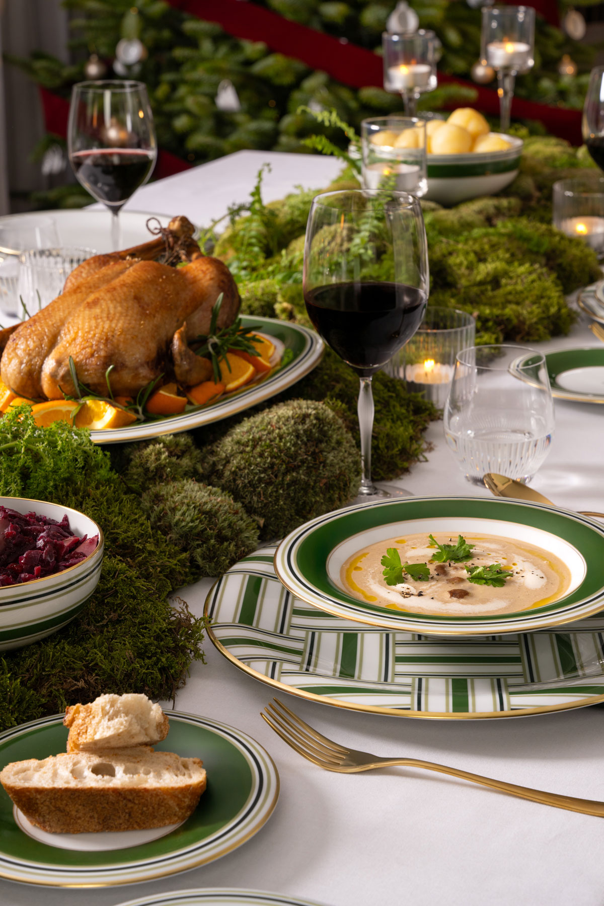 Experience a piece of porcelain poetry with the dessert bowl from the FLUEN form in the HERITAGE GREEN decor, designed by the renowned designer Alfredo Häberli for the porcelain manufactory FÜRSTENBERG. This dessert bowl embodies the perfect symbiosis between a powerful colour composition and masterful craftsmanship. The interplay of white, gold and green results in an artful object that shines both as a functional element and as an aesthetic highlight on your table.