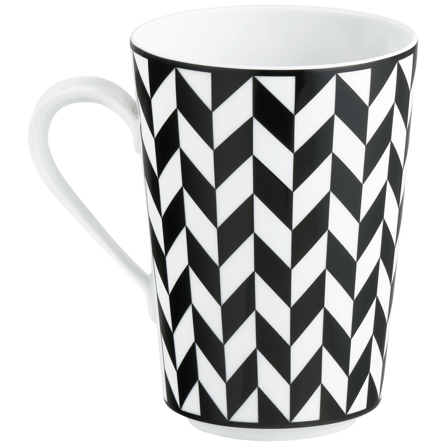 The Mug CHEVRON from the ACCESSOIRES collection brings graphic clarity to your daily ritual. Its striking black and white chevron décor creates a precise rhythm, while the clean silhouette and gently flared rim ensure a balanced, contemporary appearance.