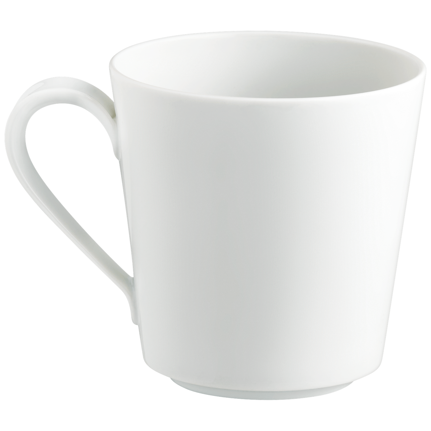 The gently rounded rim offers a pleasant drinking edge, and the elegantly drawn handle sits comfortably in your hand for controlled, secure grip. The fine, even glaze creates a smooth feel and a subtle, luminous sheen that highlights the quality of the porcelain body.