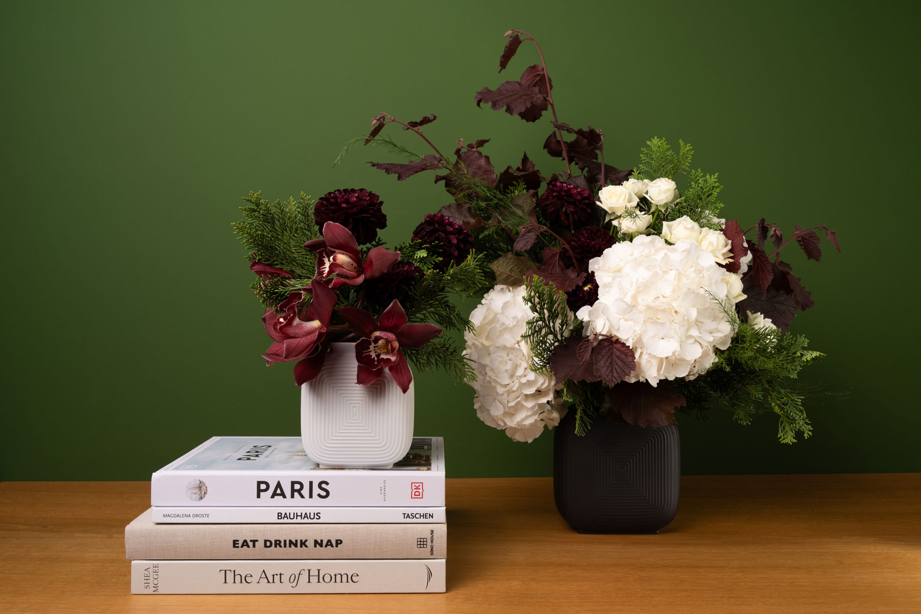 Whether staged with a single branch, a composed selection of stems, or simply as an object in its own right, the rectangular opening supports thoughtful arrangements while the compact silhouette sits discreetly on shelves, consoles, or the dining table.