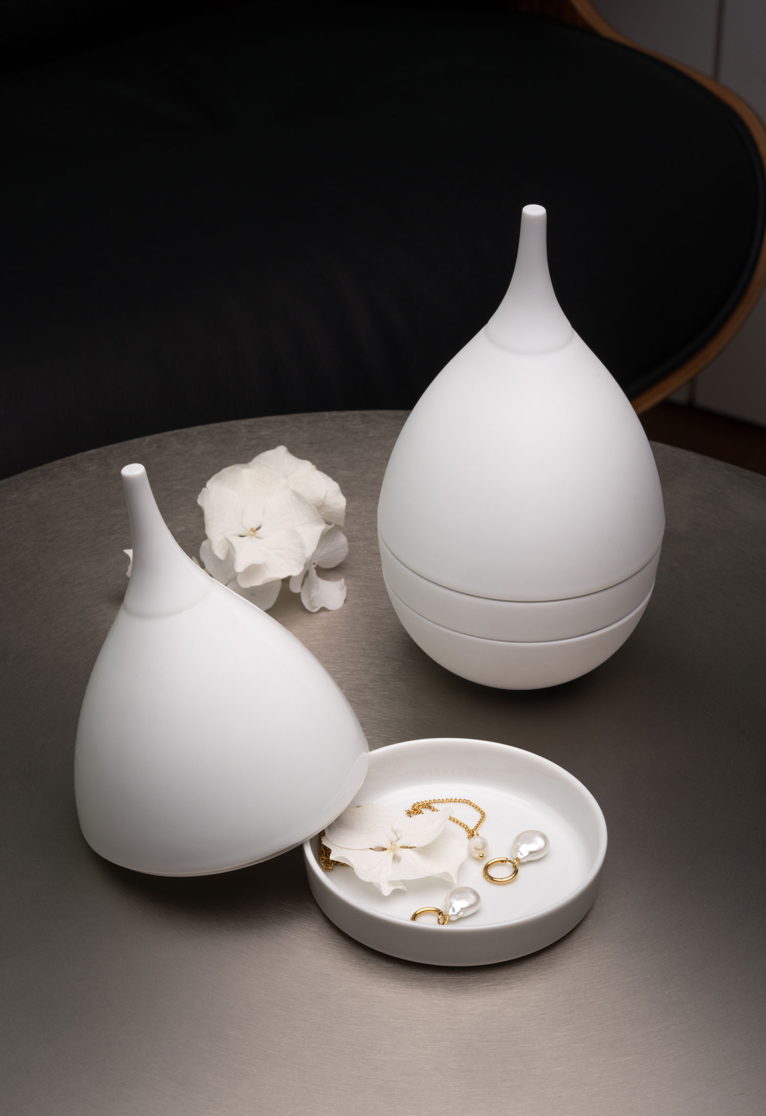 Gefertigt in der bekannten Porzellanmanufaktur FÜRSTENBERG – seit über 275 Jahren erstklassige Handwerkskunst. Feines Porzellan mit glatter Oberfläche, harmonische Proportionen und sorgfältig gefügte Elemente verleihen der Form eine sanfte Haptik und dezente Wertigkeit.