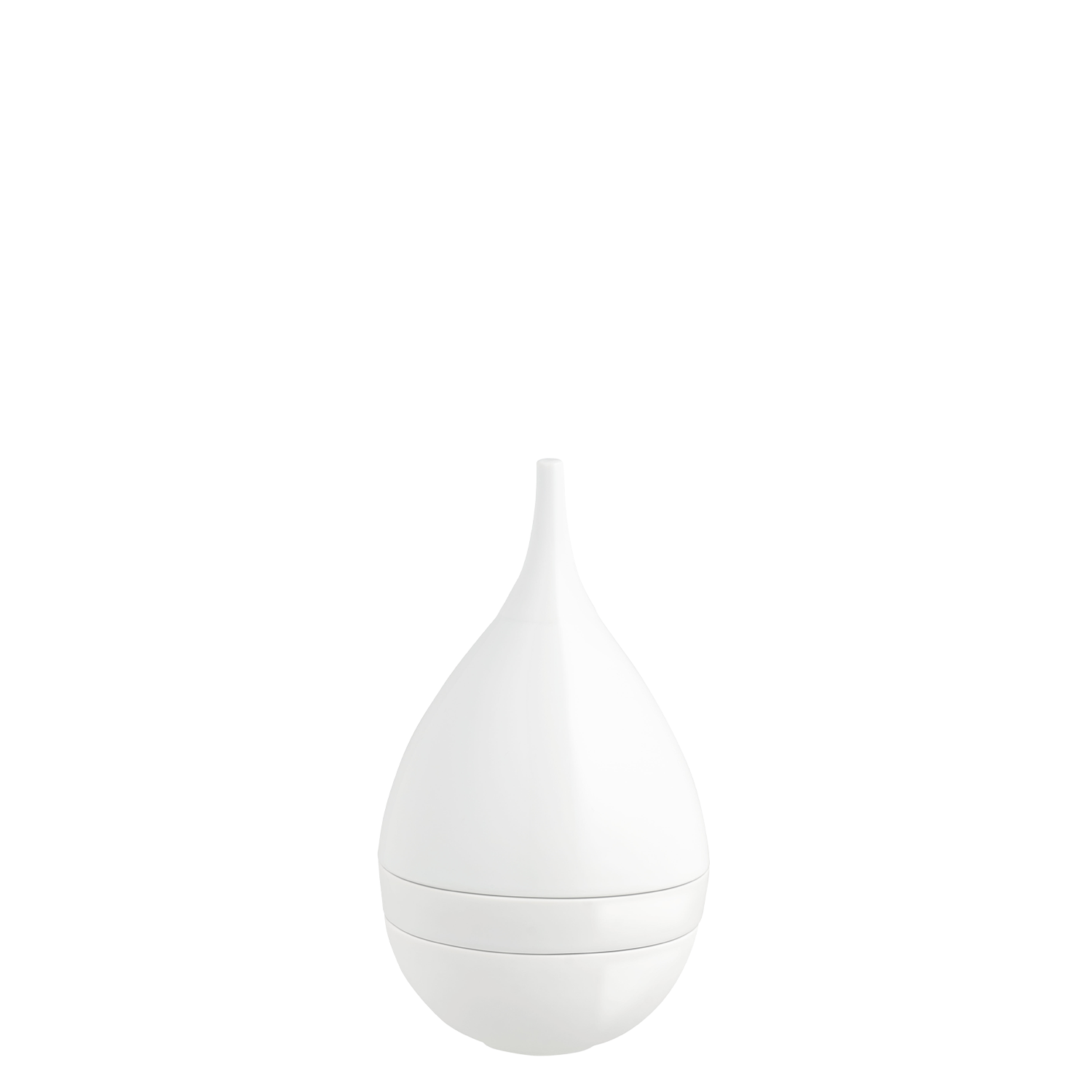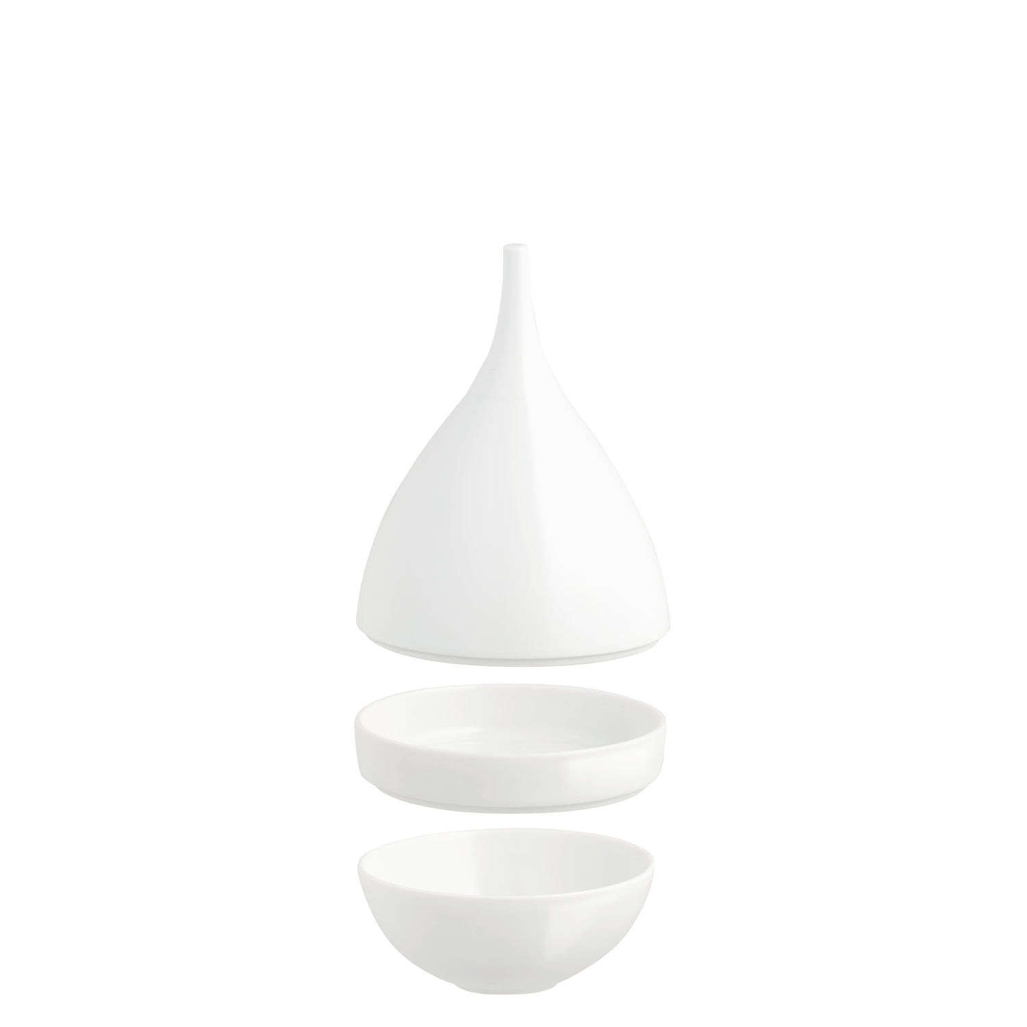 Feines, weißes Porzellan mit sanftem Glanz und angenehm glatter Haptik betont die reine Linie und unterstreicht die Porzellankunst der Manufaktur.