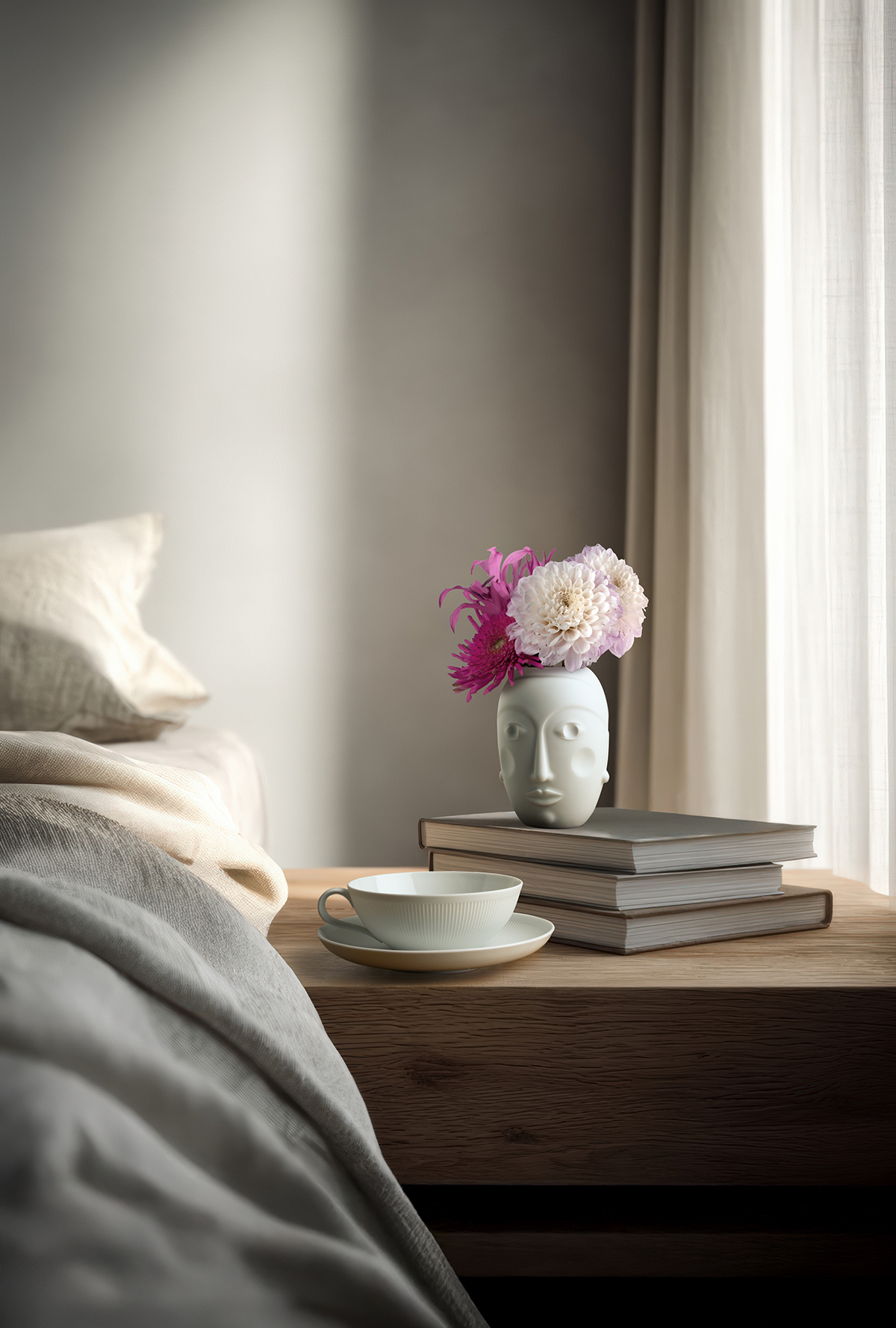 Ob als Solitär auf dem Sideboard oder als Bühne für reduzierte Blumenarrangements – die Vase setzt konzentrierte Akzente, lässt Blüten und Zweige wirken und bleibt dabei selbst formschön zurückhaltend. Mit ihrer harmonischen Ausstrahlung fügt sich LITTLE ANTHEIA selbstverständlich in moderne wie klassische Interieurs ein und verkörpert eine Haltung von zeitloser Eleganz – ruhig, präzise und beständig.
