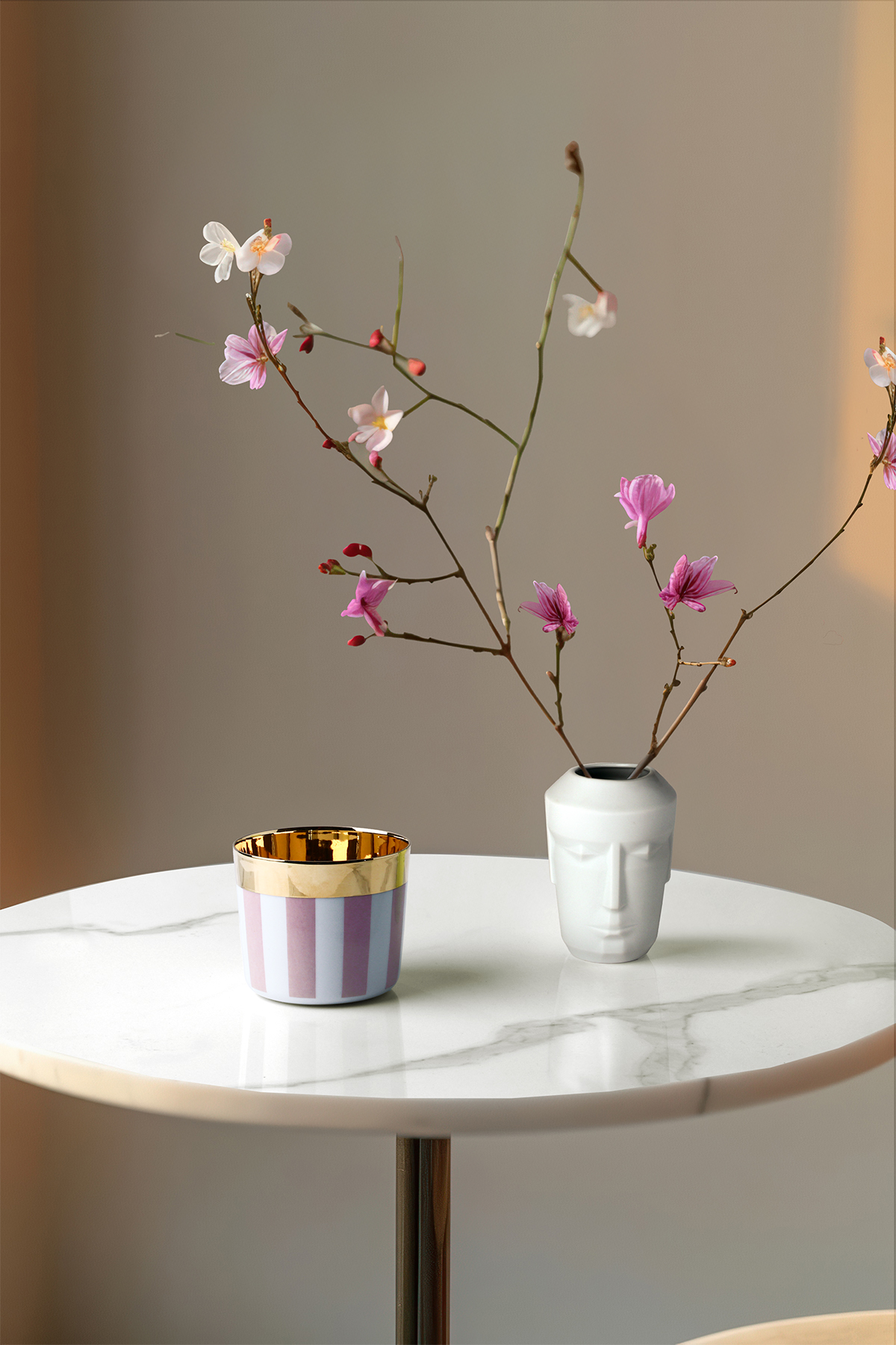 Ein vertrautes Gesicht: Das markante Relief, bisher als Gin-Becher und Eis-Bucket bekannt, erhält mit LITTLE PROMETHEUS als Tischvase einen neuen Auftritt. Die kraftvollen Gesichtszüge verleihen dem Designobjekt auch im kompakten Maßstab von zehn Zentimetern eine eindrucksvolle skulpturale Präsenz – charaktervoll, konzentriert und unverkennbar.